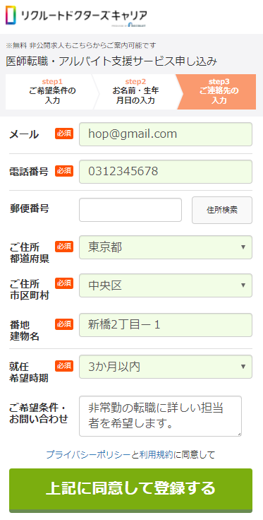 コツとしては、登録するとき備考欄に「〇〇科に強い人」「〇〇県の医師事情に詳しい人」など、希望を書けば、適合したコンサルタントに担当してもらえる可能性があります。