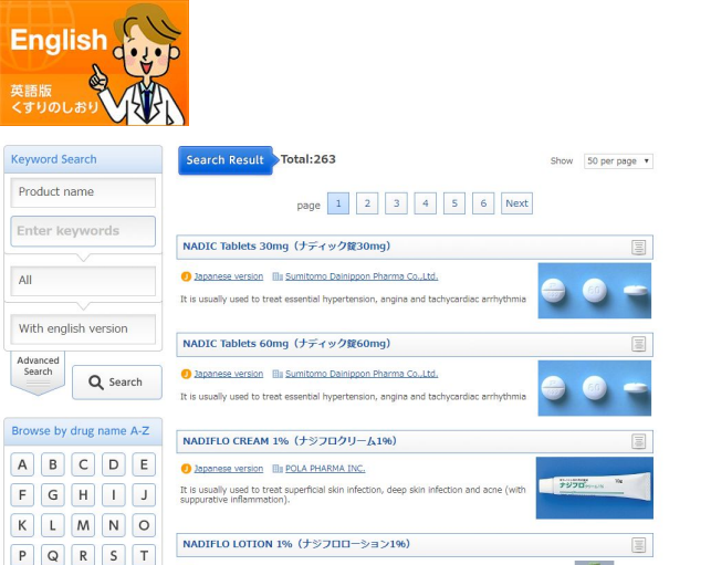 恩田さん:薬剤師さんは患者さんに薬の英語の説明文書を求められたとき英語版『くすりのしおり®』を思い出して頂ければと思います。