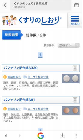 ▲調べたい薬の名前で検索すると、薬の詳しい情報が出てくる。