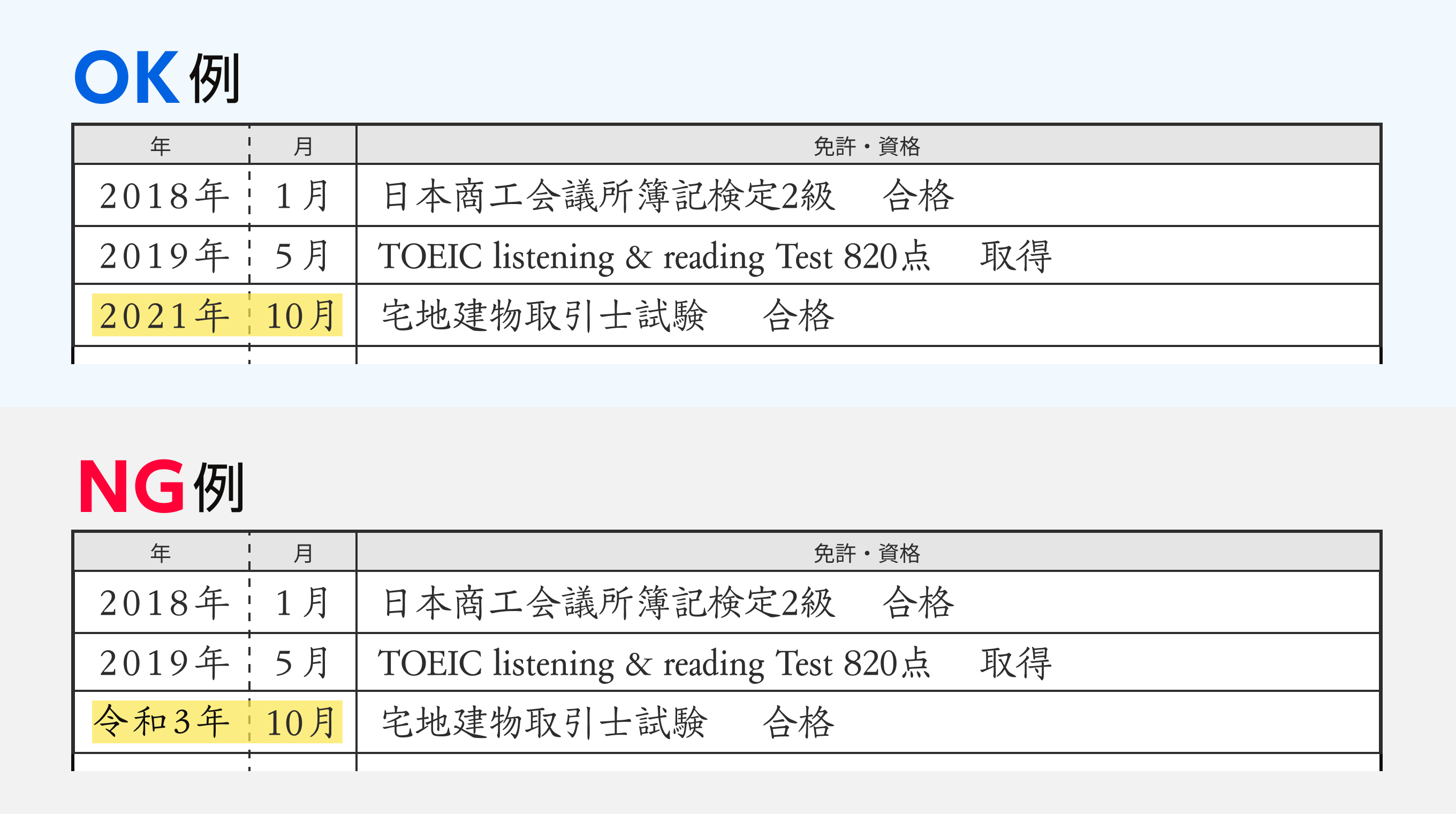 ポイント3:年月は「西暦」「和暦」をそろえて記載する