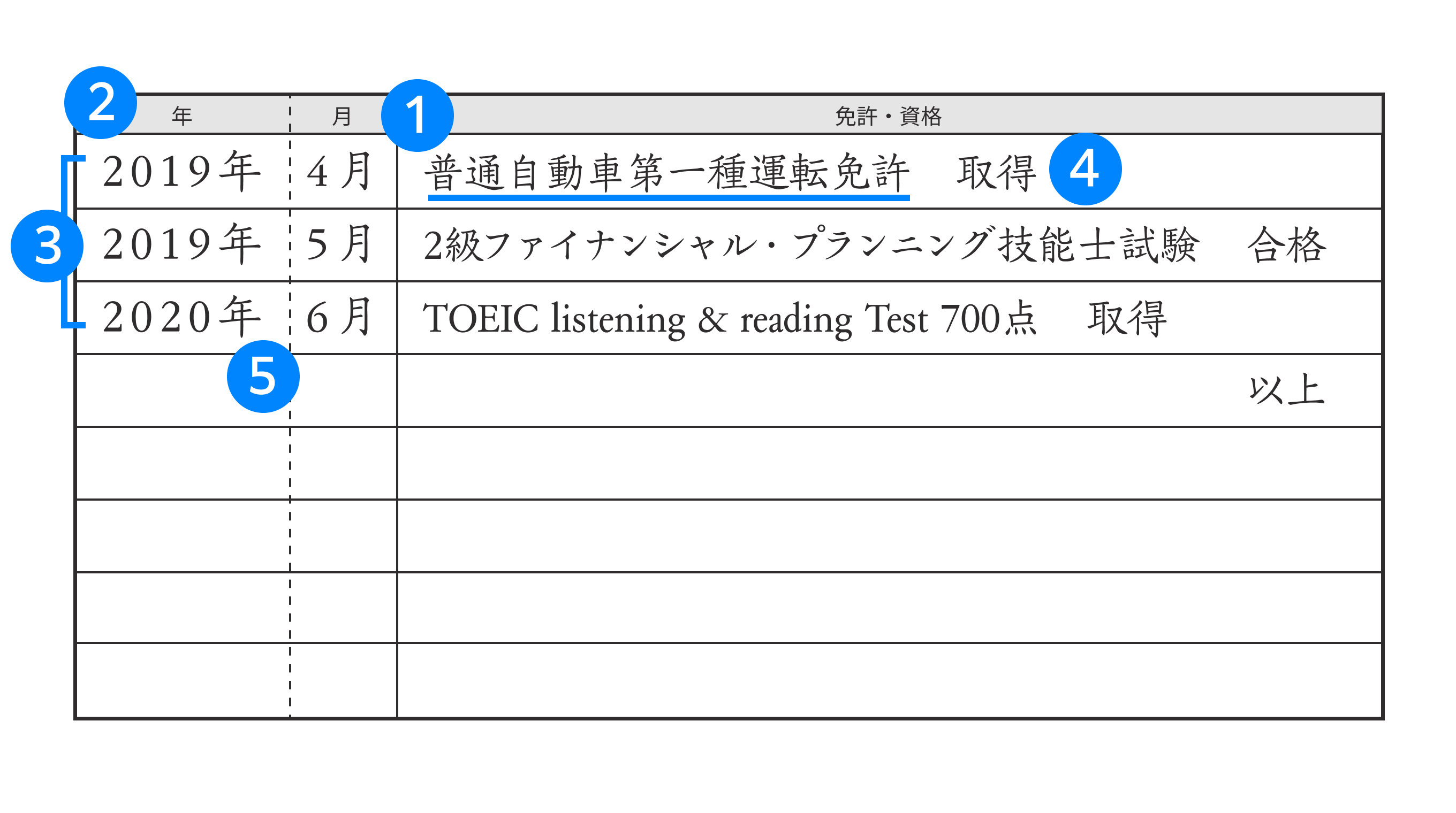 運転免許を資格欄に記載する場合の、5つのポイントを解説します。