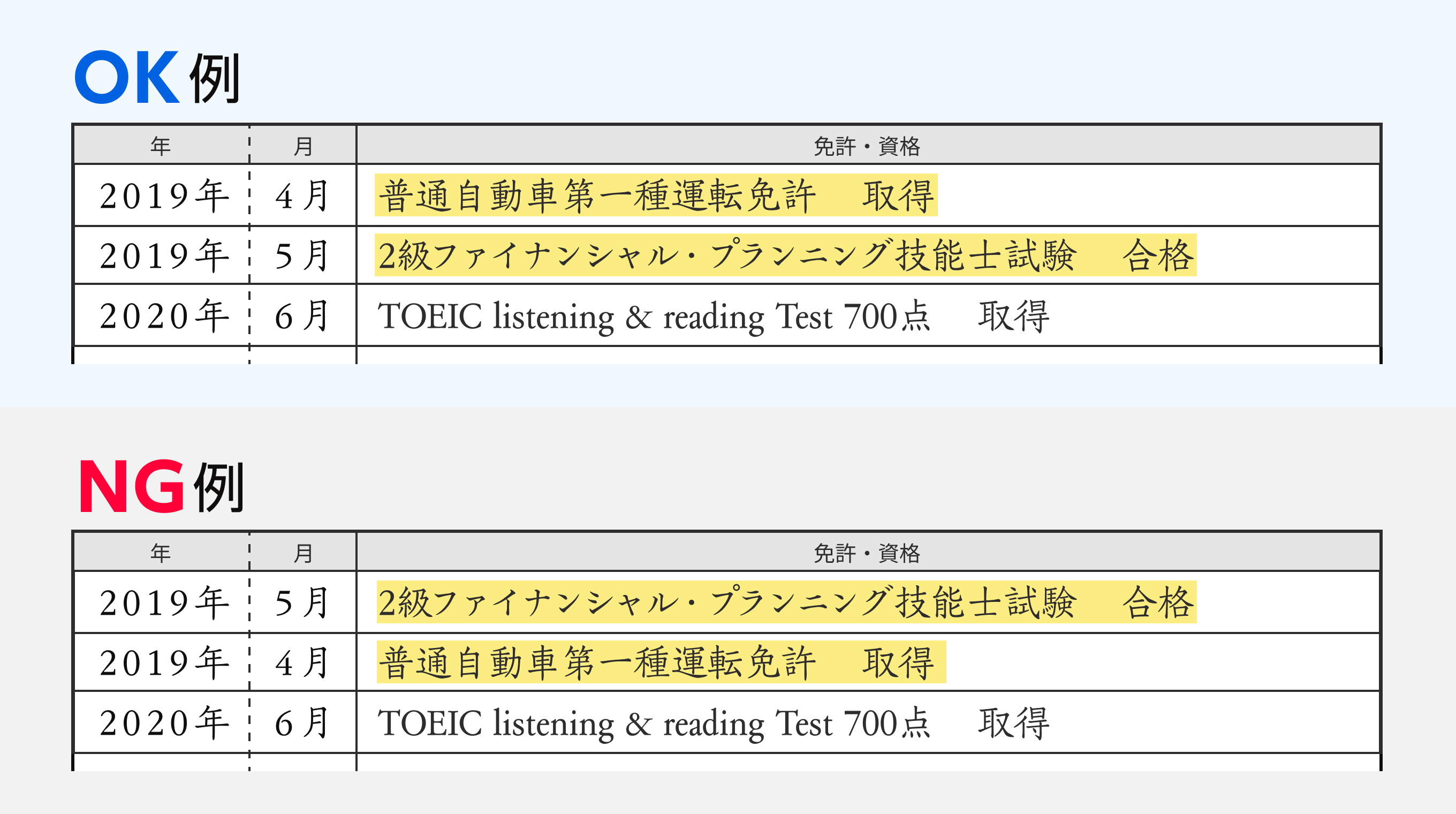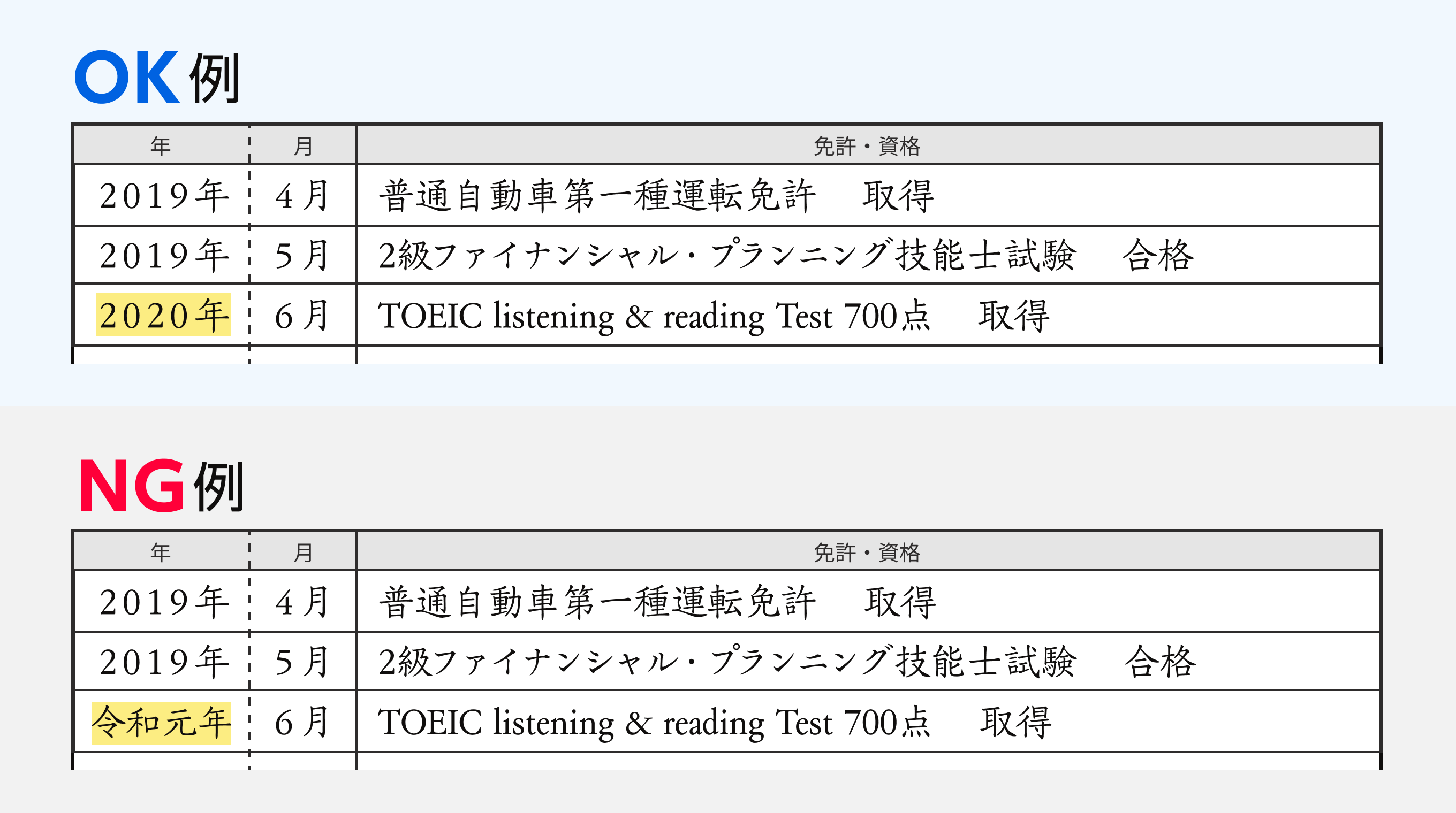 ポイント5:年月は「西暦」「和暦」どちらかにそろえて記載する