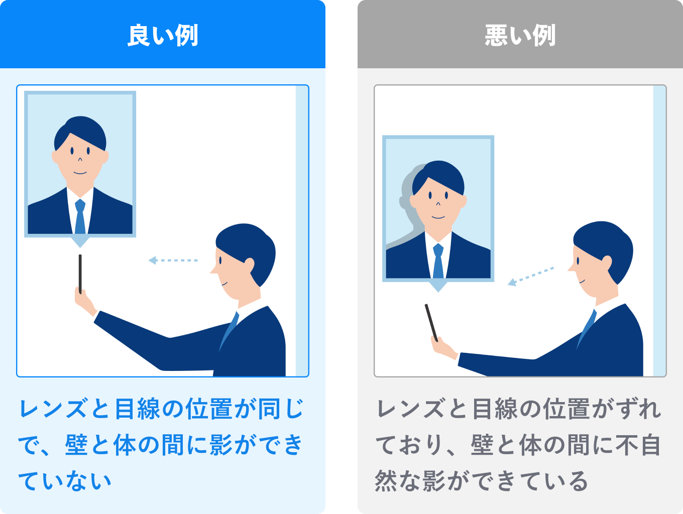 自分でスマートフォンを持ちながら撮影すると、斜めの角度になってしまう可能性があります。斜めだと目線が正面にならず、背景になる壁との間に影が生じるため、スナップ写真のようなカジュアルな仕上がりになってしまいます。
