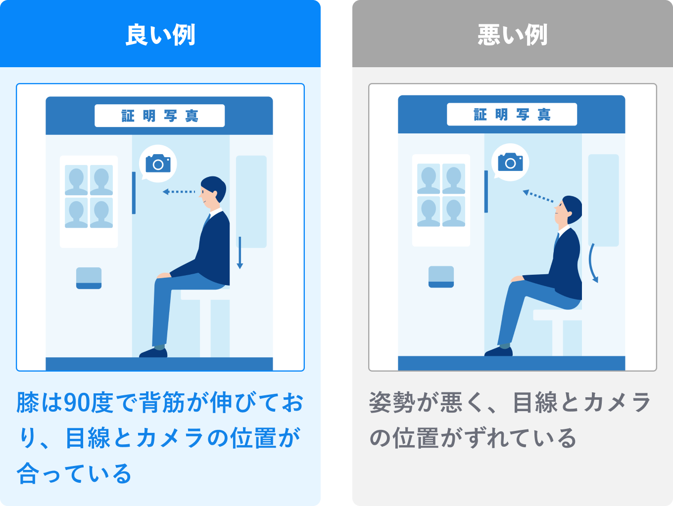 椅子の高さも証明写真機を上手に活用する重要なポイントです。低すぎると上目遣いになり、高すぎると見下ろしているような印象を与えます。