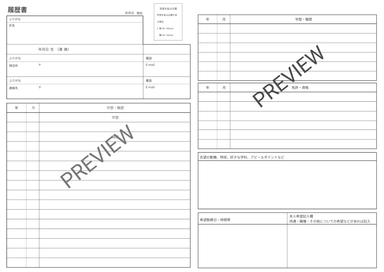 ダウンロードして使えるアルバイト用履歴書テンプレート