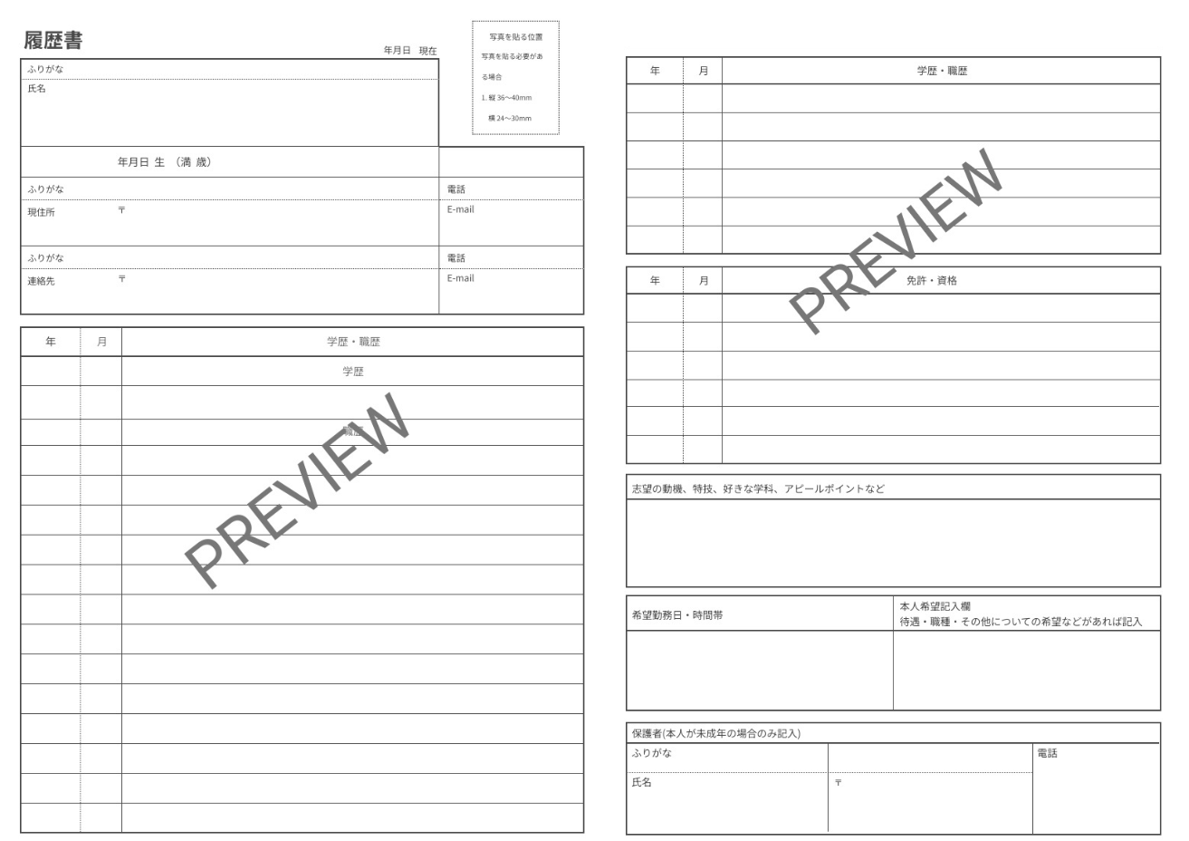 アルバイト用(保護者記入欄有り用)の履歴書テンプレート ダウンロードはこちら