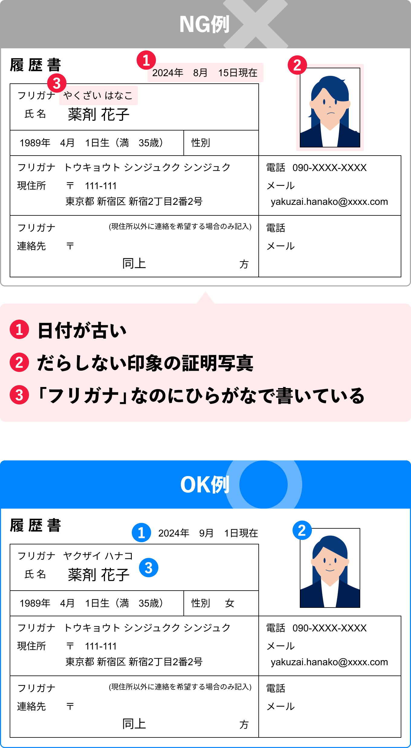 日付や証明写真、氏名や住所などの基本情報の書き方について紹介します。