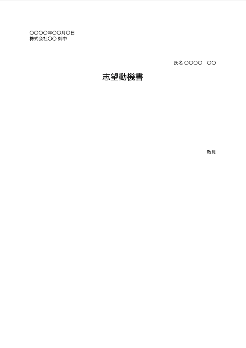志望動機書のフォーマット