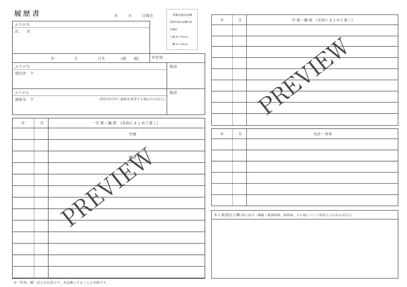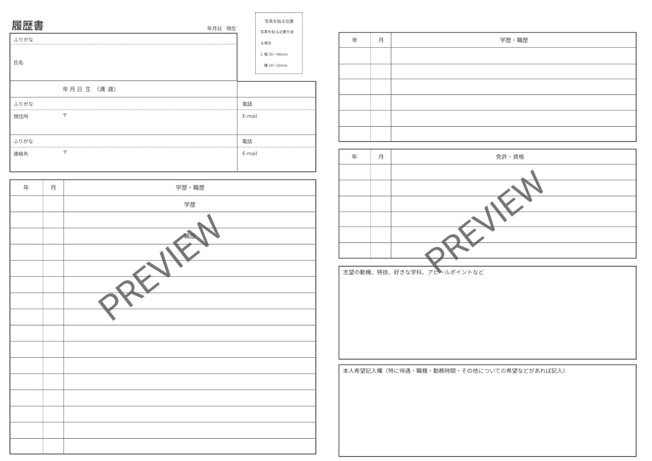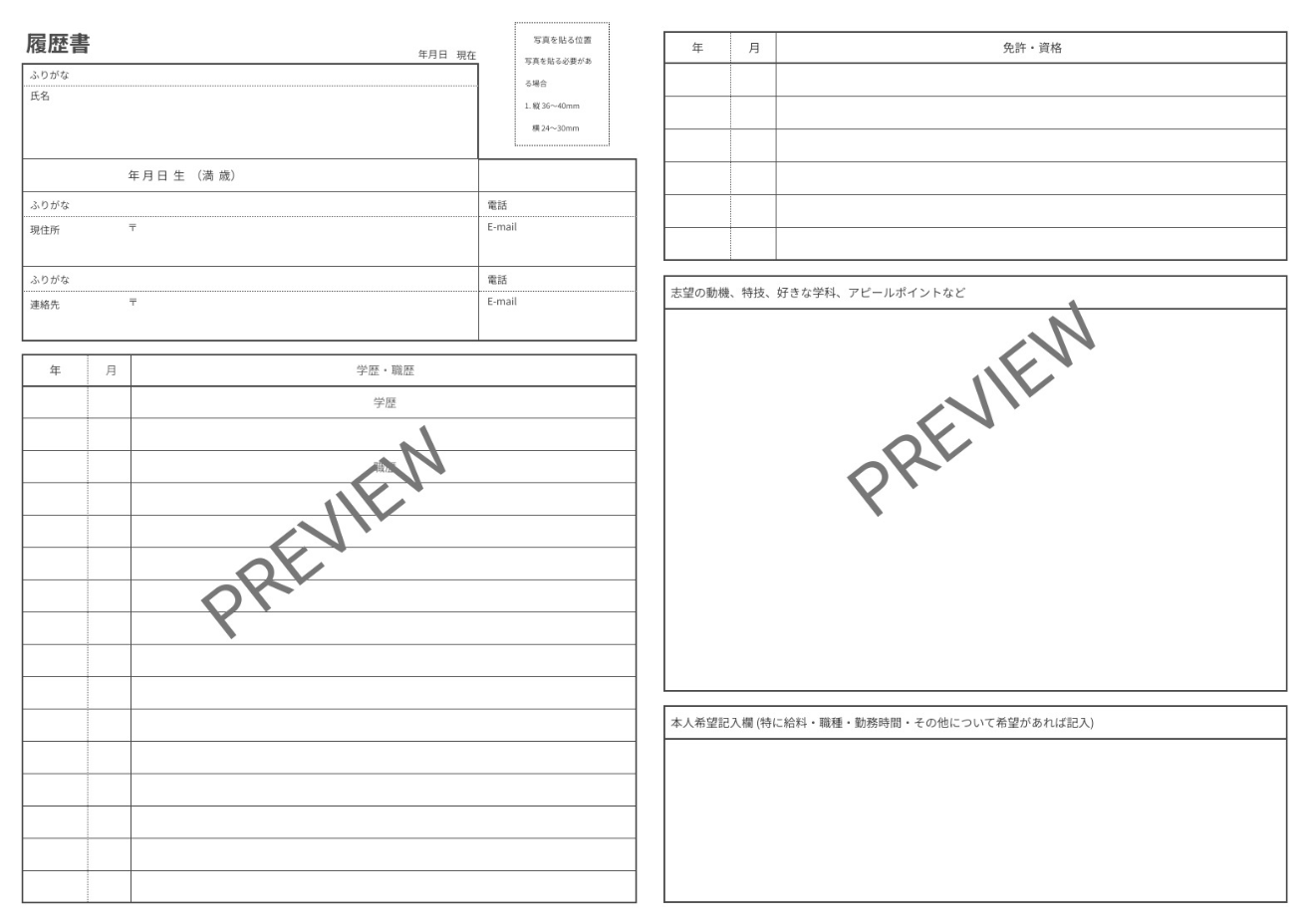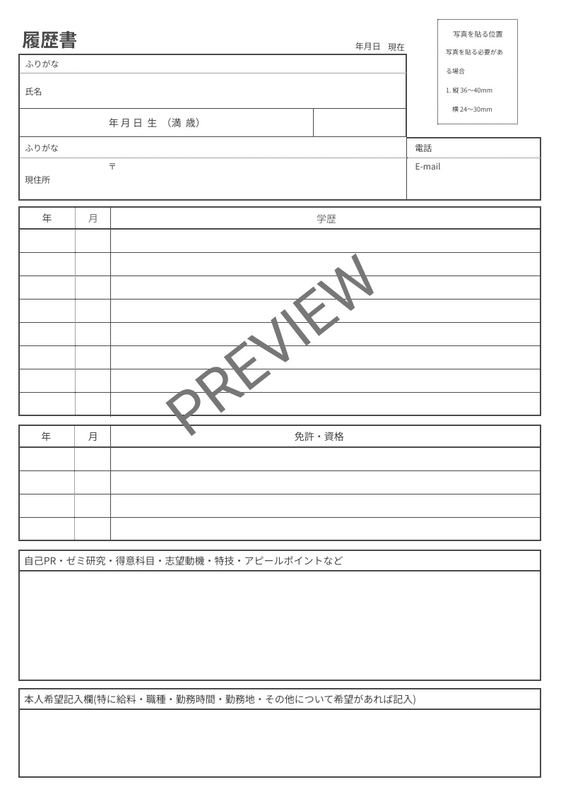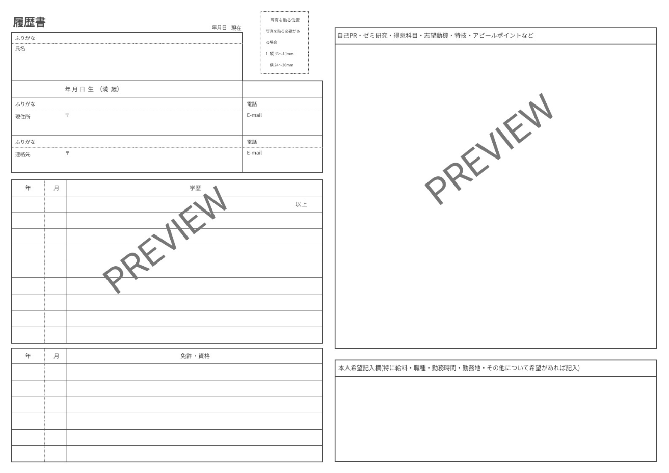 証明写真欄がない履歴書テンプレート ダウンロードはこちら