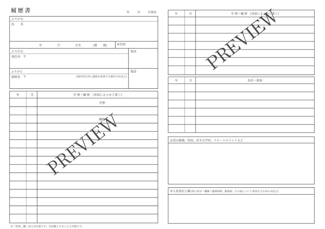 新卒用(見開き2枚)の履歴書テンプレート ダウンロードはこちら